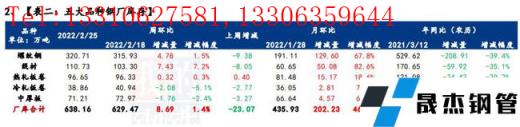 免責(zé)聲明:本網(wǎng)站(山東聊城晟杰無縫鋼管廠m.www-86604.com)刊載的“解讀:聚焦鋼鐵產(chǎn)業(yè)數(shù)據(jù)(2月24日)—板材總庫存首次去化,建材延續(xù)供庫雙增”等均源于網(wǎng)絡(luò),版權(quán)歸原作者所有,且僅代表原作者觀點(diǎn),本文所載信息僅供參考。轉(zhuǎn)載僅為學(xué)習(xí)與交流之目的,如無意中侵犯您的合法權(quán)益,請(qǐng)及時(shí)聯(lián)系刪除。本網(wǎng)站刊登此篇文章并不意味著本站贊同其觀點(diǎn)或證實(shí)其內(nèi)容的真實(shí)性,我們不對(duì)其科學(xué)性、嚴(yán)肅性等作任何形式的保證。如果侵犯了您的版權(quán),請(qǐng)盡快聯(lián)系我們予以撤銷,謝謝合作!