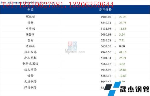 2月24日普鋼絕對價格指數變化:綜合指數5127.14,下跌26.07;螺紋鋼指數4906.07,下跌27.23;線材指數5240.31,下跌23.75;熱軋板卷指數4945.56,下跌41.16;冷軋板卷指數5504.34,下跌25.71;中厚板指數5131.98,下跌11.85。