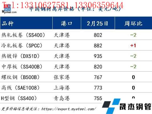 熱軋板卷出口:本周中國熱卷內貿價格呈現先揚后抑,整體趨弱。周五熱卷綜合絕對指數4912.81,周環比下降58。市場整體呈現供需兩弱,成交氛圍較差。相比之下,出口市場表現較為景氣,由于俄羅斯、日本、印度資源普遍高企,加上黑海發運的貨物船期不穩定。中國民營工廠熱卷資源在亞洲市場比較有競爭力,SS400出口成交價格或低于790美元/噸FOB,主流國營無縫厚壁鋼管廠家官方報價在820-830美元/噸FOB,也有較多工廠仍未開始節后的官方報價。評估的天津港出口熱卷主流成交價802美元/噸。一些出口商反饋,本周東南亞主導無縫厚壁鋼管廠家全面提價后,買家詢盤水平也顯著提高。相比之下,受北美市場連續下行影響,南美市場對中國熱卷的需求明顯收縮,出口商更傾向賣給東南亞。