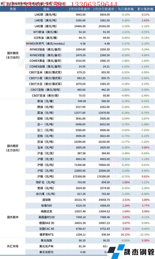 免責聲明:本網(wǎng)站(山東聊城晟杰無縫鋼管廠m.www-86604.com)刊載的“受近期局勢影響大宗商品價格一覽表(2月25日)”等均源于網(wǎng)絡,版權歸原作者所有,且僅代表原作者觀點,本文所載信息僅供參考。轉載僅為學習與交流之目的,如無意中侵犯您的合法權益,請及時聯(lián)系刪除。本網(wǎng)站刊登此篇文章并不意味著本站贊同其觀點或證實其內容的真實性,我們不對其科學性、嚴肅性等作任何形式的保證。如果侵犯了您的版權,請盡快聯(lián)系我們予以撤銷,謝謝合作!