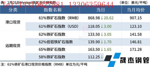 ◎ 2月25日,全國主港鐵礦石成交83.00萬噸,環比增32.2%;237家主流貿易商建材成交9.95萬噸,環比增10.3%。