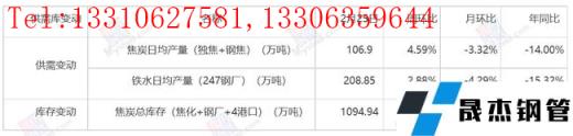同時兩會與冬殘奧會對于無縫厚壁鋼管廠家生產(chǎn)的壓制,使得無縫厚壁鋼管廠家很難出現(xiàn)較大幅度的鐵水增長表現(xiàn),且不排除期間可能出現(xiàn)的限產(chǎn)加嚴(yán)風(fēng)險,導(dǎo)致焦炭上漲的空間受限。