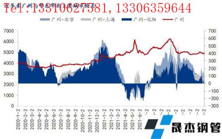 從區域價差來看,進入2月份以來,南北價差整體呈現維持的狀態,這與近年來數據基本一致,一方面2021年底,南北價差整體不如往年,北材南下均有減量,到貨延期的情況。截至2月28日廣州(剔除磅差)與北京、上海及沈陽地區螺紋鋼價差分別為100、30及30元/噸,較北京及沈陽分別縮小40、10元/噸左右,與上海縮小90元/噸。進入3月份,由于冬奧會結束,北方地區限產逐漸解除,之前受此影響的無縫厚壁鋼管廠家產量或有回升,不過由于兩會即將召開,產量回升或有限;與此同時,歷年以來,南方地區整體需求啟動要快于往年。同時由于南北價差偏小,未來北方材發貨量以及到貨量也將逐步減少,南北價差可能會被重新拉開。按照往年的數據來看,南北價差呈現“秋冬大,春夏小”的特點,隨著發運量及到貨量的減少,進入二季度南北價差或將逐漸回歸。