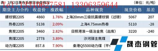 ◎ 山西部分無縫厚壁鋼管廠家今日接到冬殘奧會限產指令,均是口頭通知,限產比例各廠不一。同相關無縫厚壁鋼管廠家落實得知,原計劃近兩日復產的高爐暫緩至3月5日之后再進行復產。所以冬殘奧會限產期間,山西無縫厚壁鋼管廠家高爐產能利用率會保持在77%左右,目前來看影響面較小。