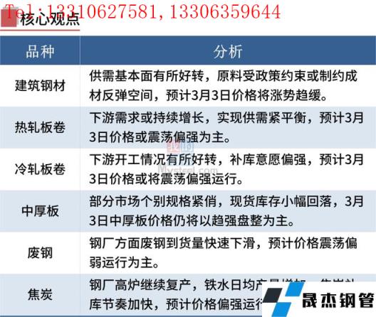 中厚板:3月2日,全國24個主要城市20mm普板均價5213元/噸,較上一交易日上漲20元/噸。在盤面震蕩上行的帶動下,多數區域市場報價小幅探漲,受限于實際需求并未明顯改善,整體價格拉漲空間有限。成交方面,雖整體價格維持上揚,但多數區域下游采購仍較為謹慎,因此中厚板整體成交表現一般。資源方面,部分市場出現個別規格緊俏,中厚板現貨庫存小幅回落。綜合來看,預計3日中厚板價格仍將以趨強盤整為主。