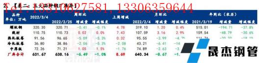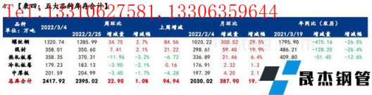 庫存方面,五大品種厚壁無縫鋼管總庫存春節(jié)后連續(xù)累增5周,環(huán)比上周增加22.9萬噸,增幅1%。分品種看,建材庫存增加42.16萬噸,增幅為2.6%;板材庫存減少19.26萬噸,降幅2.5%;分指標看,五大品種無縫厚壁鋼管廠家?guī)齑姝h(huán)比減少6.49萬噸,降幅1%;五大品種社會庫存環(huán)比增加29.39萬噸,增幅1.7%。
