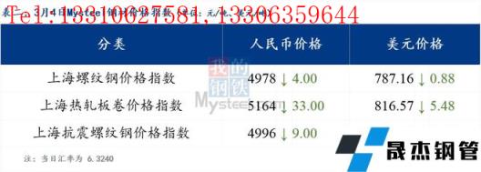 3、厚壁無(wú)縫鋼管美元價(jià)格指數(shù)是選取香港財(cái)資工會(huì)每日公布的匯率數(shù)據(jù)(如當(dāng)日未公布,將使用前一日數(shù)據(jù)),由厚壁無(wú)縫鋼管人民幣價(jià)格指數(shù)換算而來(lái)。