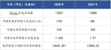 全球第二大釩生產(chǎn)國(guó)俄Evraz公司2020-2021年產(chǎn)銷數(shù)據(jù)列表