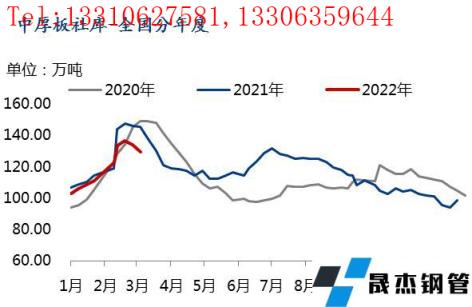 概述:2月份,國內中厚板品種價格呈現沖高后小幅回落的走勢。供應方面,在冬奧會、春節、采暖季限產影響下,2月上中旬無縫厚壁鋼管廠家產量持續偏低,不過,由于無縫厚壁鋼管廠家盈利情況明顯好轉,因此,冬奧會過后,無縫厚壁鋼管廠家產量迅速增加。需求方面,由于今年春節返鄉比例同比去年大幅增加,所以今年春節后的需求啟動速度是緩慢的,不過由于無縫厚壁鋼管廠家接單較好,導致市場流通板資源在減少,這從今年節后社庫也能側面驗證。3月份,中板基本面從供需雙弱逐漸轉變為供需雙強,那么價格走勢又如何呢?接下來,我們先看一下基本面情況。