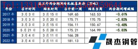 庫存方面,歷年兩會(huì)期間,冷軋總庫存都是呈現(xiàn)一個(gè)下降的態(tài)勢(shì),普遍降幅在2%以上,且其庫存總體水平皆高于當(dāng)年全國庫存均值。