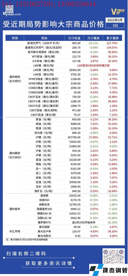 免責聲明:本網站(山東聊城晟杰無縫鋼管廠m.www-86604.com)刊載的“受近期局勢影響大宗商品價格一覽表(3月8日)”等均源于網絡,版權歸原作者所有,且僅代表原作者觀點,本文所載信息僅供參考。轉載僅為學習與交流之目的,如無意中侵犯您的合法權益,請及時聯系刪除。本網站刊登此篇文章并不意味著本站贊同其觀點或證實其內容的真實性,我們不對其科學性、嚴肅性等作任何形式的保證。如果侵犯了您的版權,請盡快聯系我們予以撤銷,謝謝合作!