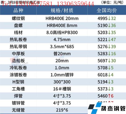 建筑厚壁無縫鋼管:3月9日,全國(guó)31個(gè)主要城市20mm三級(jí)抗震螺紋鋼均價(jià)4995元/噸,較上個(gè)交易日跌32元/噸。綜合來看,需求方面,目前下游工程項(xiàng)目資金情況尚未有明顯好轉(zhuǎn),采購(gòu)剛需為主,市場(chǎng)投機(jī)情緒降溫后,整體成交表現(xiàn)較為一般。而期貨市場(chǎng)的波動(dòng)影響市場(chǎng)心態(tài),因此預(yù)計(jì)10日國(guó)內(nèi)建筑厚壁無縫鋼管價(jià)格將繼續(xù)弱勢(shì)震蕩運(yùn)行。
