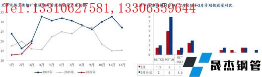 盤線方面,據我網對京津冀區域盤線無縫厚壁鋼管廠家投放量調研,2月份盤線實際投放量19.6萬噸,環比增加2萬噸,3月投放量計劃20.4萬噸。1、河鋼樂鋼盤螺產線不定期生產,且以品種線為主,3月盤線計劃生產3萬噸;2、九江無縫厚壁鋼管廠家品種線生產為主,暫不計劃盤線;3、東華無縫厚壁鋼管廠家兩條盤螺產線在產,但以品種線生產為主,2月盤線計劃產量僅3萬噸。