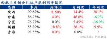 本周對西北區(qū)域15家建筑厚壁無縫鋼管生產(chǎn)企業(yè)同口徑調(diào)查顯示,目前西北區(qū)域15家鋼鐵生產(chǎn)企業(yè)38座高爐實際開工高爐37座,新疆區(qū)域新增4座高爐復(fù)產(chǎn),高爐開工率為67.96%,周環(huán)比提升5.28%;高爐實際產(chǎn)量71.2萬噸,周環(huán)比增加7.28萬噸;高爐產(chǎn)能利用率85.88%,周環(huán)比提高8.78%。