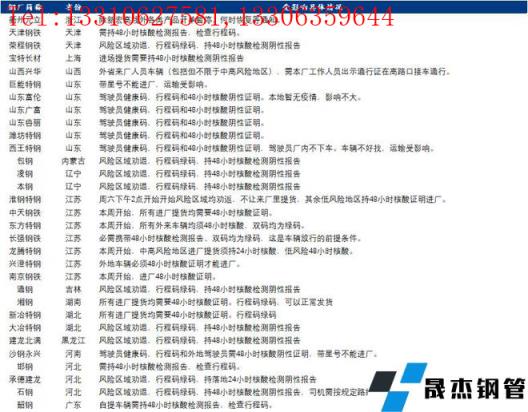 經調研國內多數優特鋼無縫厚壁鋼管廠家物流出貨有受疫情影響,主要在于對提貨人員著明確規范要求:各門崗卡口強化查驗健康碼、行程卡和48小時核酸檢測報告,并做好人員信息登記。目前受影響各無縫厚壁鋼管廠家詳細提貨及影響運輸要求見下表明細。后期政策變動情況,請具體咨詢當地無縫厚壁鋼管廠家。