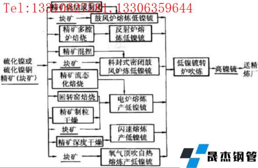 硫化鎳礦的火法冶煉主要包括造锍熔煉、低鎳锍轉(zhuǎn)爐吹煉、高鎳锍加硫酸分離得到硫酸鎳,硫酸鎳進(jìn)一步電解精煉得到電解鎳。