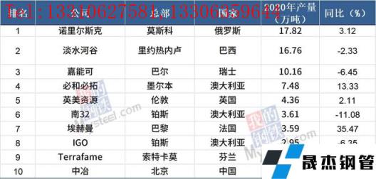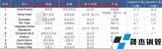2 .全球十大鎳生產(chǎn)商