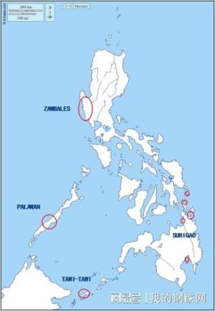 其中高鎳礦以三描禮士(Zambales)和巴拉望(Palawan)、塔威(Tawi-Tawi)為主;Surigao,位于菲律賓棉蘭島東北角的頂端,鎳礦年出貨量占總出貨量的50%-60%,主要為低中品位鎳礦。