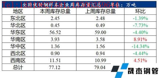 全國(guó)優(yōu)特鋼棒材樣本總庫(kù)存77.12萬(wàn)噸,環(huán)比下降1.92萬(wàn)噸,降幅2.43%。
