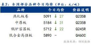今日全國部分品種均價(jià)總體趨弱,整體跌幅為22~31元/噸。