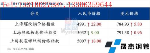 3月17日普鋼絕對價格指數(shù)變化:綜合指數(shù)5193.62,上漲21.4;螺紋鋼指數(shù)4950.59,上漲33.42;線材指數(shù)5281.15,上漲28.96;熱軋板卷指數(shù)5102.03,上漲15.98;冷軋板卷指數(shù)5533.89,上漲16.7;中厚板指數(shù)5151.92,上漲11.47。