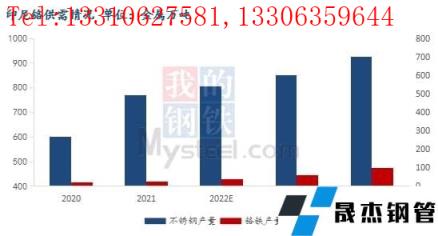 據(jù)統(tǒng)計,2021年印尼不銹鋼粗鋼產(chǎn)量494.2萬噸,全部為300系,同比增長95.33%,其中印尼青山產(chǎn)量為359.2萬噸,占比72%。2022年印尼新增投產(chǎn)計劃共計200萬噸,其中青山預(yù)計2季度新增100萬噸產(chǎn)能,不排除新增投產(chǎn)直接用于生產(chǎn)高冰鎳,若印尼青山持續(xù)減產(chǎn)不銹鋼生產(chǎn)高冰鎳,鉻需求將繼續(xù)下滑。預(yù)計2022年印尼不銹鋼產(chǎn)量約為540萬噸,較年初預(yù)期減少約30萬噸,鉻需求量減少約11萬噸。