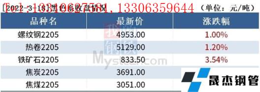 截至3月18日收盤,螺紋鋼2205收4953元/噸,漲1%;熱卷2205收5129元/噸,漲1.2%;鐵礦石2205收833.5元/噸,漲3.54%。