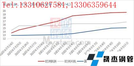 2月24日EW矛盾突發,原本穩定的供應鏈受到影響,擔憂情緒四處蔓延,歐洲釩市首當其沖產品價格快速上漲。國內市場高度關注國際價格走勢,利好消息不斷,市場樂觀情緒高漲,又是恰逢國內三月鋼招,雙重利好相互疊加不斷推動國內釩市上漲,致使國內原料散貨成交價格高達現金15.1-15.2萬元/噸,創近年來新高。