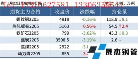 熱軋板卷:3月22日,全國24個主要城市4.75mm熱軋板卷均價5203元/噸,較上個交易日上漲13元/噸。黑色商品期貨尾盤小幅下跌,現貨成交情況開始轉弱,市場基本處于穩盤,部分地區有暗降的情況。目前全國各無縫厚壁鋼管廠家檢修基本完畢,供應逐漸恢復正常。需求方面來看,近期部分地區受疫情影響較重,需求釋放得到限制。綜合來看,近期市場基本處于平穩階段,供大于需預期存在,市場整體恐慌情緒有加重趨勢,預計短期熱軋卷板價格或將震蕩趨弱為主。