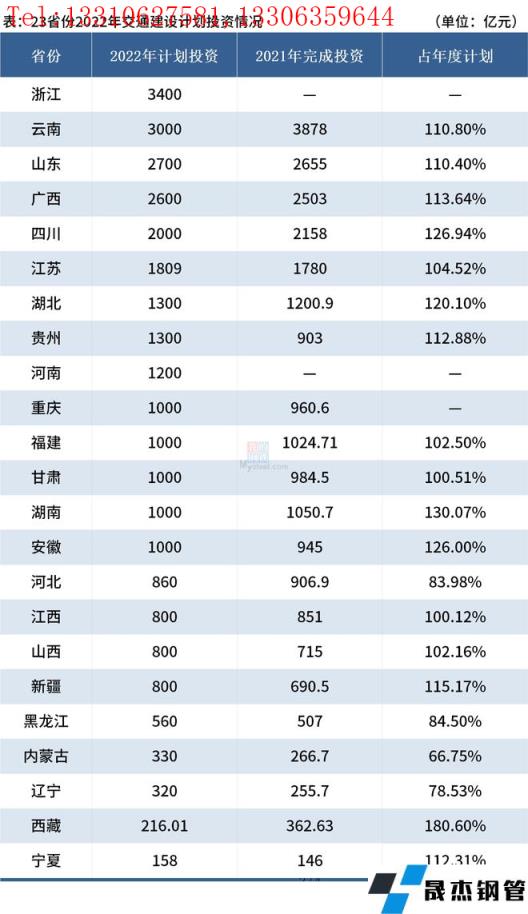 免責聲明:本網(wǎng)站(山東聊城晟杰無縫鋼管廠m.www-86604.com)刊載的“23省份2022年交通建設(shè)計劃投資近3萬億元”等均源于網(wǎng)絡(luò),版權(quán)歸原作者所有,且僅代表原作者觀點,本文所載信息僅供參考。轉(zhuǎn)載僅為學習與交流之目的,如無意中侵犯您的合法權(quán)益,請及時聯(lián)系刪除。本網(wǎng)站刊登此篇文章并不意味著本站贊同其觀點或證實其內(nèi)容的真實性,我們不對其科學性、嚴肅性等作任何形式的保證。如果侵犯了您的版權(quán),請盡快聯(lián)系我們予以撤銷,謝謝合作!