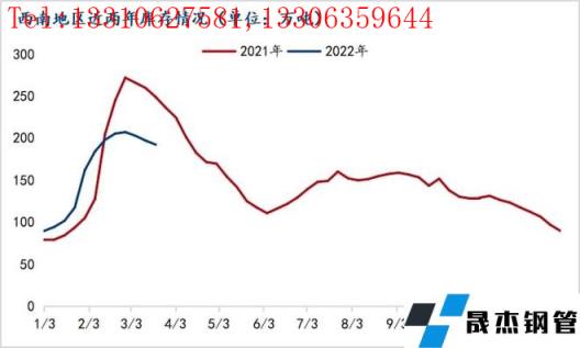 三月份西南地區(qū)建筑厚壁無縫鋼管窄幅震蕩運行,下游復(fù)工復(fù)產(chǎn)不及預(yù)期、全國疫情再次擴散、俄烏局勢沖突未息等多重因素疊加,放緩了季節(jié)性需求釋放的速度,西南整體去庫存速度同比偏緩慢。筆者就西南地區(qū)庫存數(shù)據(jù)情況作簡要分析。