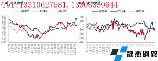 目前北京價(jià)格居于低位,不過(guò)從南北價(jià)差的歷史數(shù)據(jù)來(lái)看,廣州-北京價(jià)差不足300元/噸,也屬于偏低水平;雖然目前東北區(qū)域價(jià)格略高于北京,但是東北區(qū)域受疫情影響較大,汽運(yùn)運(yùn)輸受阻,資源消化艱難,其中沈陽(yáng)建筑厚壁無(wú)縫鋼管市場(chǎng)庫(kù)存量已經(jīng)創(chuàng)出有調(diào)研數(shù)據(jù)以來(lái)的峰值,市場(chǎng)有一定的庫(kù)存壓力,因此在華南價(jià)格優(yōu)勢(shì)不大,又在緩解東北區(qū)域壓力的前提下,北京以及京津冀其他區(qū)域仍是東北區(qū)域無(wú)縫厚壁鋼管廠家(凌鋼、新?lián)徜摰龋┵Y源輸送的主要區(qū)域。