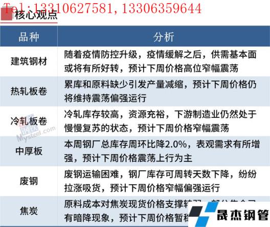 供給方面,受疫情影響,全國高爐廠復產進度放緩,部分電爐廠因虧損選擇停產檢修,本周鋼鐵產量增加有限。需求方面,多地疫情管控升級,物流運輸受阻,工程施工放緩,對厚壁無縫鋼管需求影響更大。無縫厚壁鋼管廠家庫存已連續兩周環比增加,供需基本面偏弱。不過,由于成本支撐及輸入性通脹壓力加大,廠商也無降價意愿。短期內,鋼市不確定因素較多,鋼價或震蕩偏強,板材表現強于建材,持續關注國內疫情及國際局勢變化。