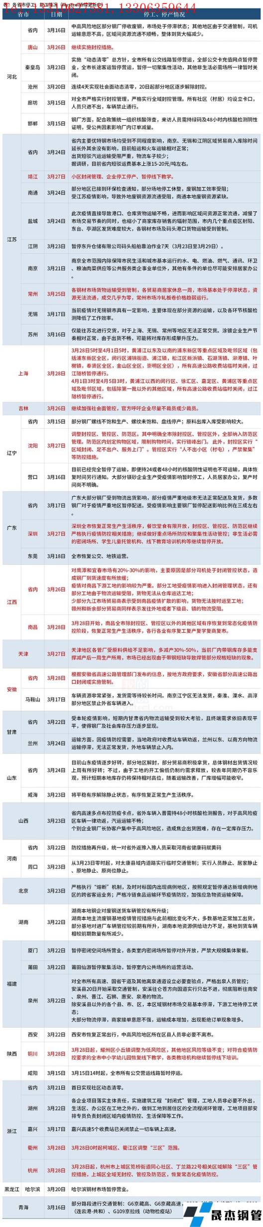 免責聲明:本網站(山東聊城晟杰無縫鋼管廠m.www-86604.com)刊載的“疫情防控下,各省停工復工最新情況匯總(十)”等均源于網絡,版權歸原作者所有,且僅代表原作者觀點,本文所載信息僅供參考。轉載僅為學習與交流之目的,如無意中侵犯您的合法權益,請及時聯系刪除。本網站刊登此篇文章并不意味著本站贊同其觀點或證實其內容的真實性,我們不對其科學性、嚴肅性等作任何形式的保證。如果侵犯了您的版權,請盡快聯系我們予以撤銷,謝謝合作!