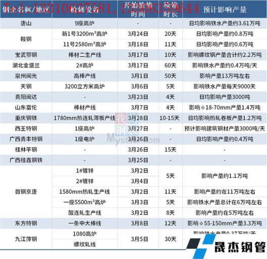 免責(zé)聲明:本網(wǎng)站(山東聊城晟杰無(wú)縫鋼管廠m.www-86604.com)刊載的“3月各地?zé)o縫鋼管廠家停產(chǎn)檢修匯總(附產(chǎn)量影響)”等均源于網(wǎng)絡(luò),版權(quán)歸原作者所有,且僅代表原作者觀點(diǎn),本文所載信息僅供參考。轉(zhuǎn)載僅為學(xué)習(xí)與交流之目的,如無(wú)意中侵犯您的合法權(quán)益,請(qǐng)及時(shí)聯(lián)系刪除。本網(wǎng)站刊登此篇文章并不意味著本站贊同其觀點(diǎn)或證實(shí)其內(nèi)容的真實(shí)性,我們不對(duì)其科學(xué)性、嚴(yán)肅性等作任何形式的保證。如果侵犯了您的版權(quán),請(qǐng)盡快聯(lián)系我們予以撤銷(xiāo),謝謝合作!