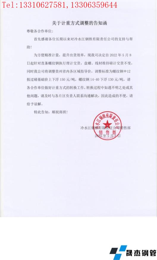 免責聲明:本網(wǎng)站(山東聊城晟杰無縫鋼管廠m.www-86604.com)刊載的“冷水江鋼鐵有限責任公司關(guān)于對貴州區(qū)域計重方式調(diào)整的告知函”等均源于網(wǎng)絡(luò),版權(quán)歸原作者所有,且僅代表原作者觀點,本文所載信息僅供參考。轉(zhuǎn)載僅為學習與交流之目的,如無意中侵犯您的合法權(quán)益,請及時聯(lián)系刪除。本網(wǎng)站刊登此篇文章并不意味著本站贊同其觀點或證實其內(nèi)容的真實性,我們不對其科學性、嚴肅性等作任何形式的保證。如果侵犯了您的版權(quán),請盡快聯(lián)系我們予以撤銷,謝謝合作!