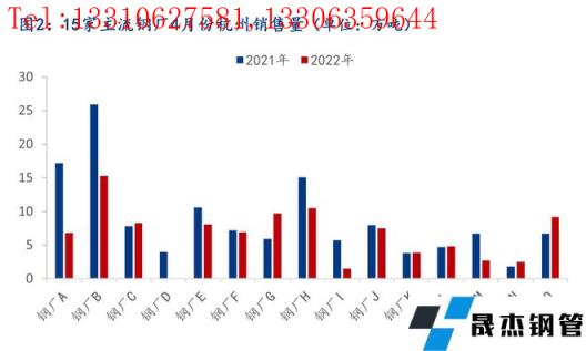 2、15家主導無縫厚壁鋼管廠家4月在杭銷售量為97.7萬噸,較發貨量相比增加4.4萬噸。清明小長假過后,杭州市場下游需求不斷釋放,上半個月碼頭出庫量逐步改善,不斷朝去年同期水平靠近。但下半個月受杭州疫情影響,部分區域工地停工、碼頭停止作業,整體需求下滑明顯,全月需求依然低于市場預期水平。