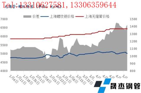 今年以來,國內(nèi)無縫管價(jià)格不斷走高,在近幾個(gè)月中的階段性調(diào)整中始終保持堅(jiān)挺運(yùn)行。以上海市場(chǎng)價(jià)格為例,截止5月7號(hào)上海市場(chǎng)108*4.5mm主流無縫管價(jià)格為6430元/噸,2月、4月出現(xiàn)兩波明顯的上漲行情,進(jìn)入5月價(jià)格開啟震蕩調(diào)整行情。通過對(duì)比上海地區(qū)無縫管與螺紋價(jià)差,我們可以發(fā)現(xiàn)兩個(gè)品種間的價(jià)差處于擴(kuò)張區(qū)間,108*4.5mm無縫管與20mm螺紋價(jià)差從年初的1090元/噸擴(kuò)大到1420元/噸。那么,目前無縫管價(jià)格堅(jiān)挺的主要原因有哪些?對(duì)于后期行情的參考點(diǎn)又在哪里?
