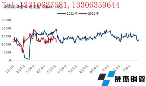 而在近期無縫管廠開工率、產(chǎn)能利用率均有提升的情況下,市場(chǎng)供應(yīng)卻還是處于低位,其主要原因,其一,國內(nèi)疫情使得運(yùn)輸環(huán)節(jié)出現(xiàn)問題,市場(chǎng)發(fā)貨及終端到貨周期均有拉長(zhǎng),運(yùn)費(fèi)提高、到貨時(shí)間增加,市場(chǎng)到貨不及時(shí);其二,下游一定程度上還是存在訂單問題,貨物流轉(zhuǎn)從上中下游阻塞,市場(chǎng)客戶選擇主動(dòng)控制庫存,以維持供需的一個(gè)相對(duì)平衡。結(jié)合以上兩點(diǎn),目前市場(chǎng)供應(yīng)量低位運(yùn)行也是市場(chǎng)主被動(dòng)減庫的結(jié)果。在需求相對(duì)偏弱的情況下,市場(chǎng)客戶希望在其中尋找一個(gè)平衡點(diǎn),這也使得價(jià)格短期相對(duì)堅(jiān)挺。并且管廠方面,盡管供應(yīng)回升,他們面臨庫存回升的風(fēng)險(xiǎn),但他們同時(shí)也面臨較高的成本壓力,短期管坯資源緊張、價(jià)格高漲或是生產(chǎn)企業(yè)較為關(guān)心的問題。