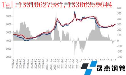 華東和華南作為鍍鋅板卷三大主流區域中的兩個,其分工職責略有不同,華東地區以上海為例,其更多是作為無縫厚壁鋼管廠家投放資源的聚集地。隨著周邊江蘇、浙江等下游產業越來越集中,上海地區資源真正消化也是依托周邊市場。而華南市場一直以來作為消費市場,基本屬于是資源流入型區域,尤其是華東、華北地區資源,依托水運將大部分資源發往華南。無論是從地理位置還是資源消費,華南地區價格本應該處于三大主流區域中價格最高的水平,但是從圖1可以明顯看出,2021年6月中下旬到8月上旬,差不多維持了一個半月的倒掛,華南地區鍍鋅板卷價格較華東地區倒掛幅度達到200元/噸左右。