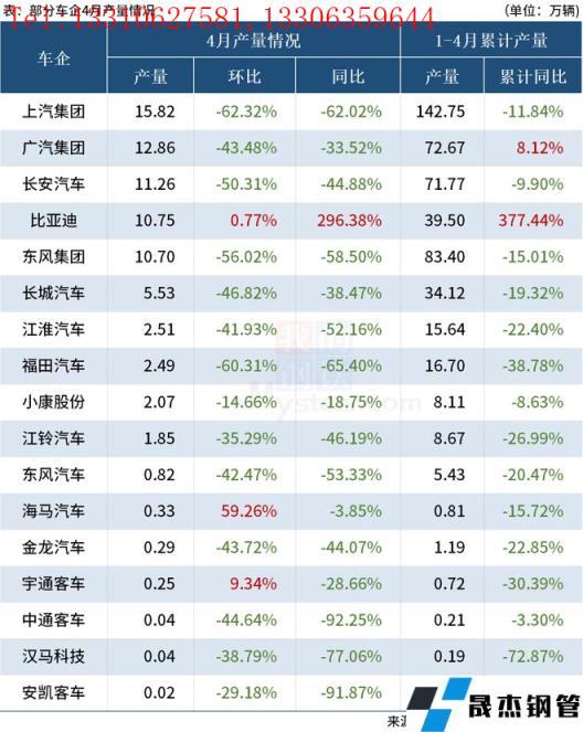 免責聲明:本網站(山東聊城晟杰無縫鋼管廠m.www-86604.com)刊載的“4月19家車企銷量出爐,超九成同比大降”等均源于網絡,版權歸原作者所有,且僅代表原作者觀點,本文所載信息僅供參考。轉載僅為學習與交流之目的,如無意中侵犯您的合法權益,請及時聯系刪除。本網站刊登此篇文章并不意味著本站贊同其觀點或證實其內容的真實性,我們不對其科學性、嚴肅性等作任何形式的保證。如果侵犯了您的版權,請盡快聯系我們予以撤銷,謝謝合作!