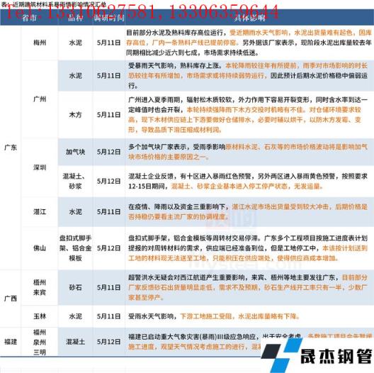 截至5月12日,據(jù)百年建筑網(wǎng)調(diào)研,3省建材市場(chǎng)和建筑工地進(jìn)度受到明顯影響。本次降雨是今年以來(lái)廣東遭遇強(qiáng)度最強(qiáng)、范圍最廣、持續(xù)時(shí)間最長(zhǎng)的強(qiáng)降水過(guò)程,城鄉(xiāng)積澇和地質(zhì)災(zāi)害風(fēng)險(xiǎn)極高,嚴(yán)重影響水泥企業(yè)出庫(kù)。目前降雨情況來(lái)看,多數(shù)施工項(xiàng)目會(huì)先暫緩施工進(jìn)度,觀(guān)望天氣情況再考慮施工的進(jìn)行。具體情況如下: