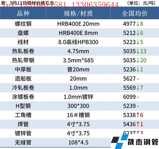 建筑厚壁無(wú)縫鋼管:5月12日,全國(guó)31個(gè)主要城市20mm三級(jí)抗震螺紋鋼均價(jià)4977元/噸,較上個(gè)交易日下跌8元/噸。本周螺紋鋼產(chǎn)量小幅回升,廠庫(kù)上升,但社庫(kù)降幅明顯,同時(shí)節(jié)后歸來(lái)表觀消費(fèi)有所增加。短期來(lái)看,部分地區(qū)已經(jīng)開(kāi)始出現(xiàn)停產(chǎn)、減產(chǎn)情況,在需求依然低迷的情況下,預(yù)計(jì)13日國(guó)內(nèi)建筑厚壁無(wú)縫鋼管價(jià)格或?qū)⒅髁髭吶跽{(diào)整為主。