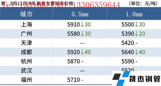 冷軋板卷:5月12日,全國(guó)24個(gè)主要城市1.0mm冷卷均價(jià)5569元/噸,較上個(gè)交易日下跌7元/噸。今日黑色系期貨盤(pán)面呈高開(kāi)低走,現(xiàn)貨市場(chǎng)報(bào)價(jià)混亂,部分商家報(bào)價(jià)以穩(wěn)為主,今日成交表現(xiàn)偏差。心態(tài)方面,南方近期進(jìn)入汛期,市場(chǎng)需求或?qū)⒂兴鶞螅碳倚膽B(tài)多謹(jǐn)慎,當(dāng)下操作以出貨成交為主。庫(kù)存方面,據(jù)不完全統(tǒng)計(jì),本周冷軋無(wú)縫厚壁鋼管廠家?guī)齑?3.05萬(wàn)噸,周環(huán)比減少1.08萬(wàn)噸,社會(huì)庫(kù)存136.81萬(wàn)噸,周環(huán)比減少2.60萬(wàn)噸,周消費(fèi)量83.81萬(wàn)噸,環(huán)比增加0.50萬(wàn)噸。綜合來(lái)看,故預(yù)計(jì)13日國(guó)內(nèi)冷軋板卷價(jià)格或?qū)⒄鹗幤踹\(yùn)行。