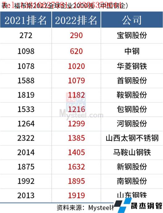 免責聲明:本網站(山東聊城晟杰無縫鋼管廠m.www-86604.com)刊載的“中國12家鋼企上榜福布斯2022全球企業2000強”等均源于網絡,版權歸原作者所有,且僅代表原作者觀點,本文所載信息僅供參考。轉載僅為學習與交流之目的,如無意中侵犯您的合法權益,請及時聯系刪除。本網站刊登此篇文章并不意味著本站贊同其觀點或證實其內容的真實性,我們不對其科學性、嚴肅性等作任何形式的保證。如果侵犯了您的版權,請盡快聯系我們予以撤銷,謝謝合作!