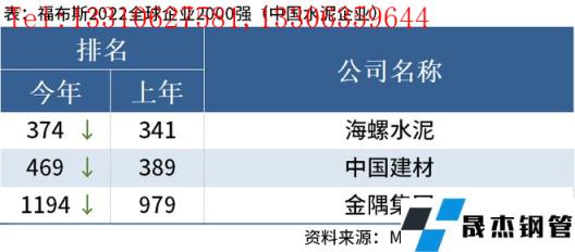 免責聲明:本網站(山東聊城晟杰無縫鋼管廠m.www-86604.com)刊載的“中國3家水泥企業上榜福布斯2022全球企業2000強”等均源于網絡,版權歸原作者所有,且僅代表原作者觀點,本文所載信息僅供參考。轉載僅為學習與交流之目的,如無意中侵犯您的合法權益,請及時聯系刪除。本網站刊登此篇文章并不意味著本站贊同其觀點或證實其內容的真實性,我們不對其科學性、嚴肅性等作任何形式的保證。如果侵犯了您的版權,請盡快聯系我們予以撤銷,謝謝合作!