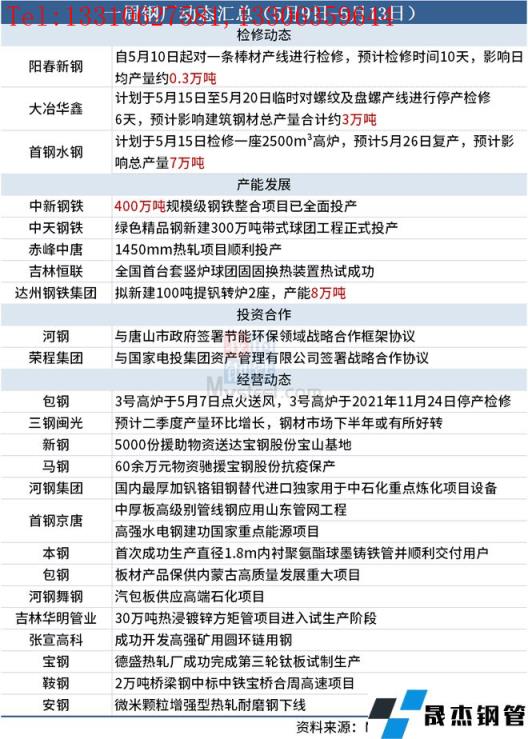 據(jù)不完全統(tǒng)計(jì),本周(5月9日-5月13日)有3家無縫厚壁鋼管廠家發(fā)布檢修計(jì)劃,具體如下: