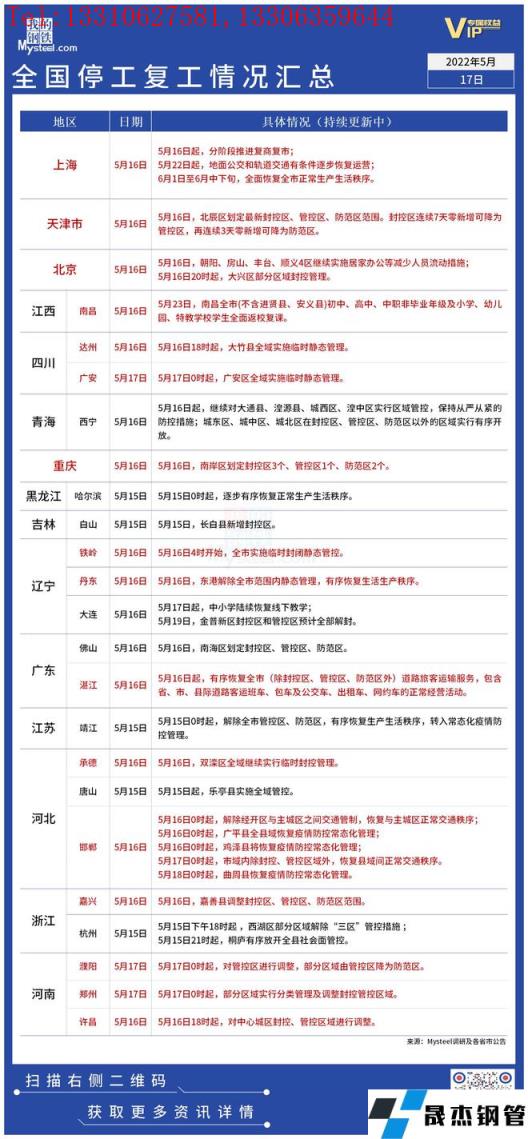 免責聲明:本網站(山東聊城晟杰無縫鋼管廠m.www-86604.com)刊載的“疫情影響丨全國停工復工情況匯總(5月17日)”等均源于網絡,版權歸原作者所有,且僅代表原作者觀點,本文所載信息僅供參考。轉載僅為學習與交流之目的,如無意中侵犯您的合法權益,請及時聯系刪除。本網站刊登此篇文章并不意味著本站贊同其觀點或證實其內容的真實性,我們不對其科學性、嚴肅性等作任何形式的保證。如果侵犯了您的版權,請盡快聯系我們予以撤銷,謝謝合作!
