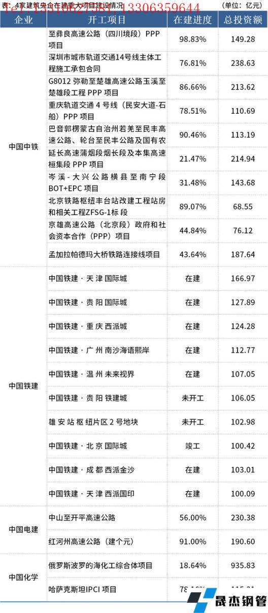 免責聲明:本網站(山東聊城晟杰無縫鋼管廠m.www-86604.com)刊載的“4家建筑央公布24個在建項目,總投資4139.97億元”等均源于網絡,版權歸原作者所有,且僅代表原作者觀點,本文所載信息僅供參考。轉載僅為學習與交流之目的,如無意中侵犯您的合法權益,請及時聯系刪除。本網站刊登此篇文章并不意味著本站贊同其觀點或證實其內容的真實性,我們不對其科學性、嚴肅性等作任何形式的保證。如果侵犯了您的版權,請盡快聯系我們予以撤銷,謝謝合作!