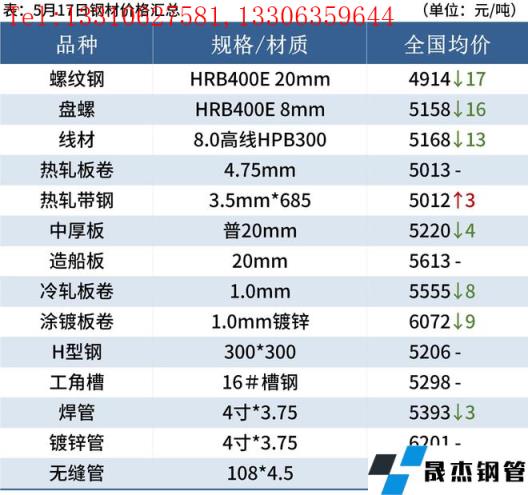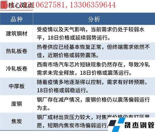 建筑厚壁無(wú)縫鋼管:5月17日,全國(guó)31個(gè)主要城市20mm三級(jí)抗震螺紋鋼均價(jià)4914元/噸,較上個(gè)交易日下跌17元/噸。從成交方面來(lái)看,早盤(pán)成交清淡,不溫不火,午后隨著期貨走弱,現(xiàn)貨跟跌,全天成交偏弱。短期來(lái)看,受疫情以及天氣影響,當(dāng)前需求仍處于較弱水平,總體成交清淡,預(yù)計(jì)18日國(guó)內(nèi)建筑厚壁無(wú)縫鋼管價(jià)格延續(xù)弱勢(shì)運(yùn)行態(tài)勢(shì)。